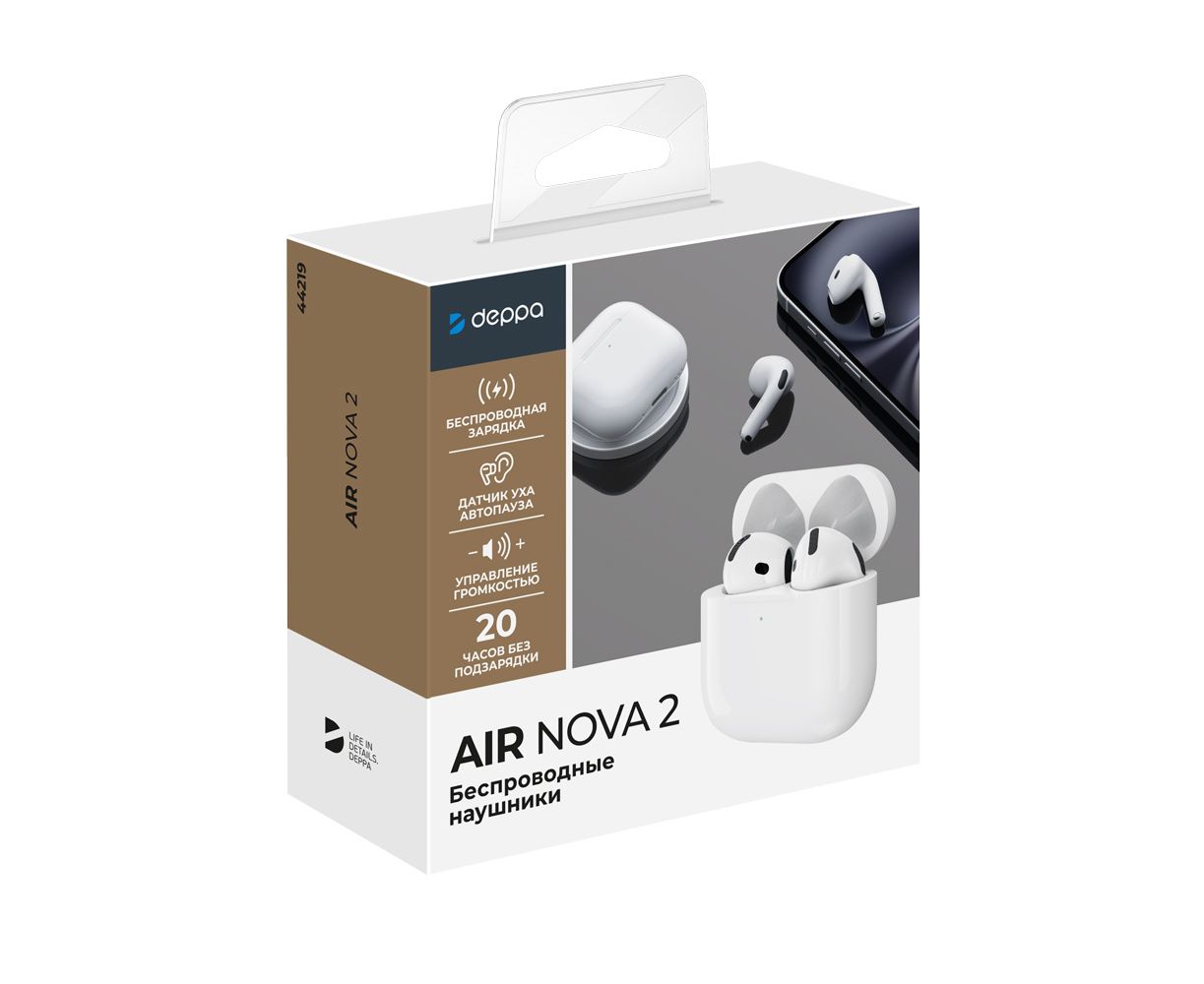 Беспроводные наушники с микрофоном Air Nova 2, TWS, BT5.4, 300 мАч, QI, белый, Deppa