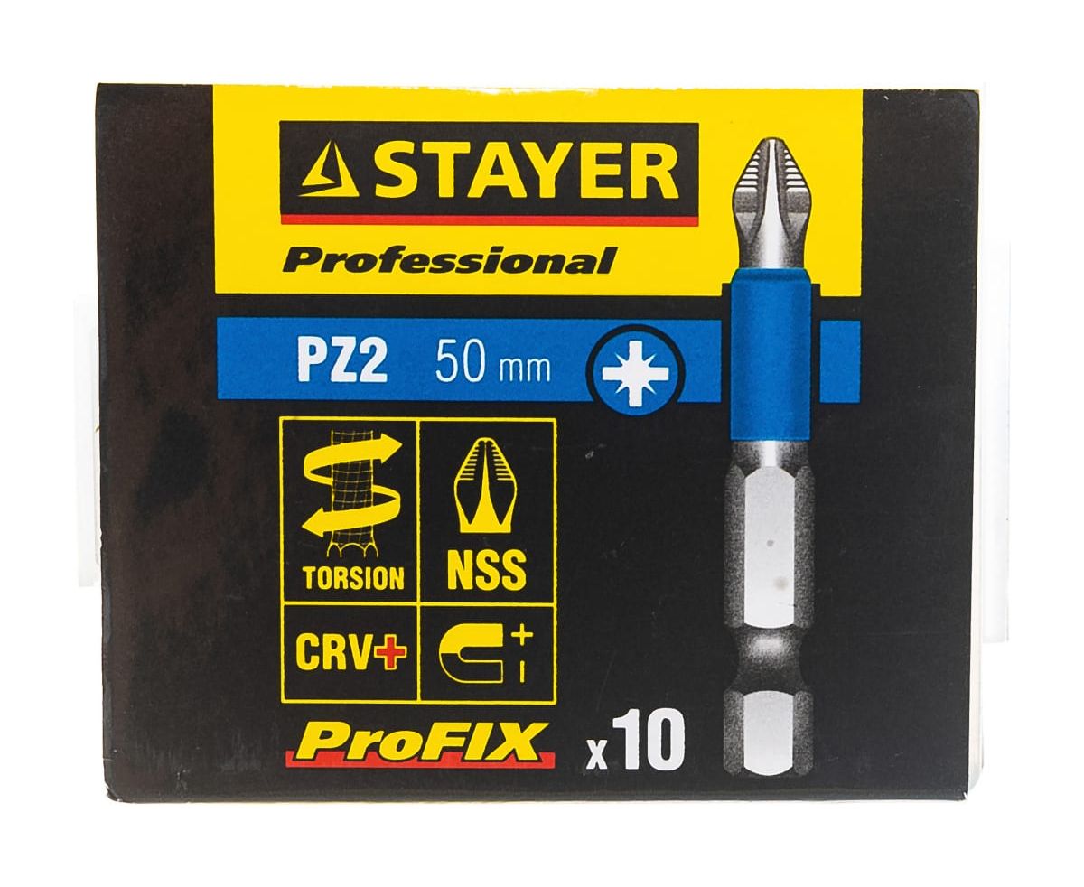 Бита STAYER Professional 26223-2-50-10_z01 ProFix E 1/4'' № 2 L-50мм 10шт