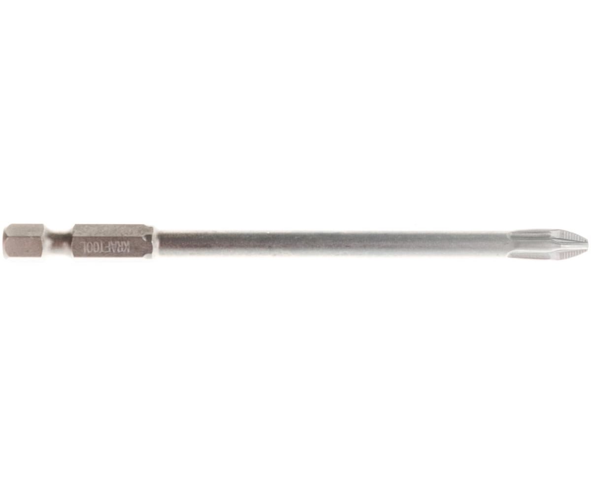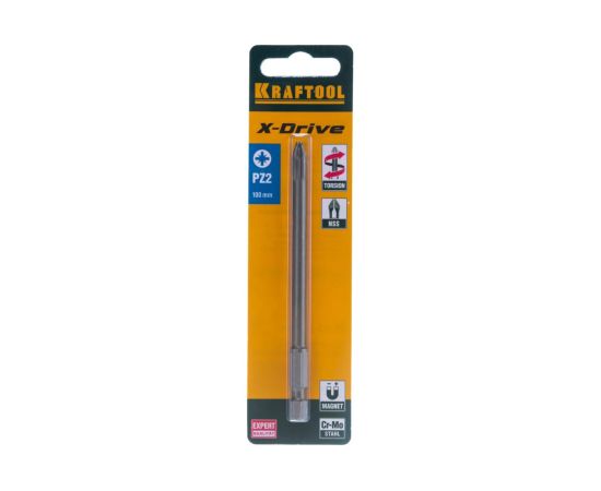 Биты KRAFTOOL X-Drive 26123-2-100-1, торсионные кованые, обточенные Cr-Mo сталь, тип хвостовика E 1/4, PZ2, 100мм, 1шт