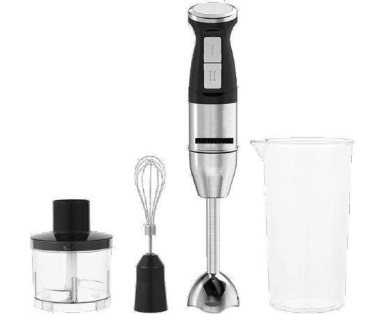 Максимальная мощность: 500Bт; 3 в 1: насадка блендер, насадка-венчик, насадка-измельчитель; Корпус блендера из Высококачественный АБС-пластик; Количество скоростей: 2 режим скорост; Шнур электропитания: 1 м; Защита двигателя от перегрузки: термостат (автоотключение до полного остывания двигателя); Чаша для резки (500мл); Мерный стакан (700мл); Номинальное напряжение: 220 – 240в; Вес нетто/ брутто (кг) : 1,06 / 1,18 кг; Габариты упаковки (ШхГхВ): 209х149х215 мм
