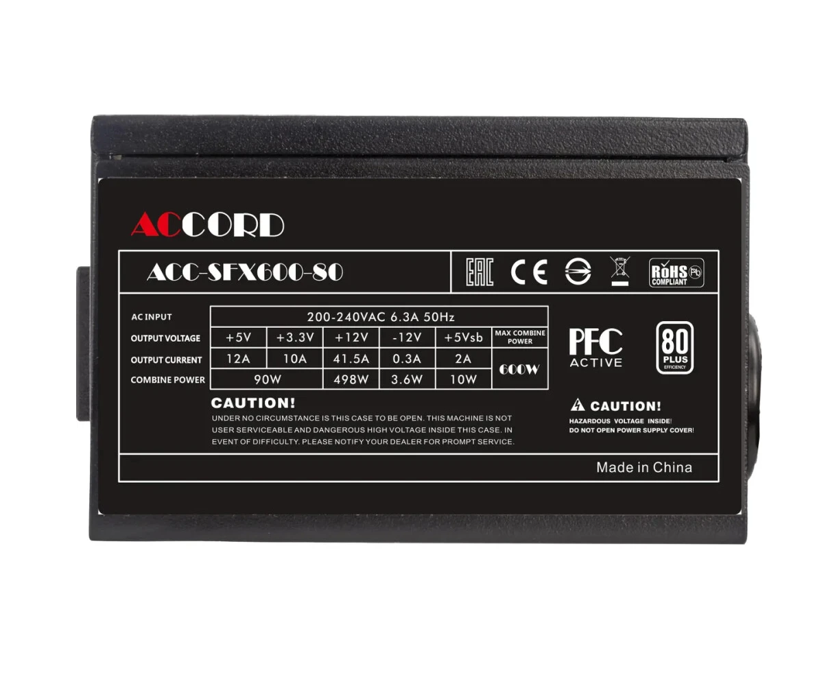 Блок питания Accord ACC-SFX600-80, SFX 600W 24pin APFC 80mm fan 3xSATA RTL