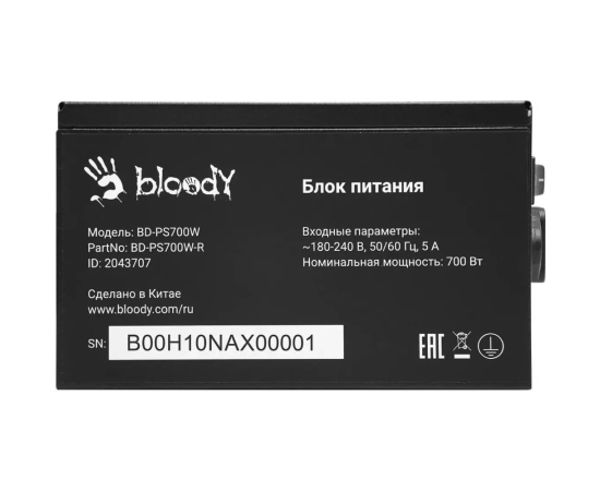 Блок питания BLOODY BD-PS700W (BD-PS700W-R), 700Вт, 120мм, черный, retail
