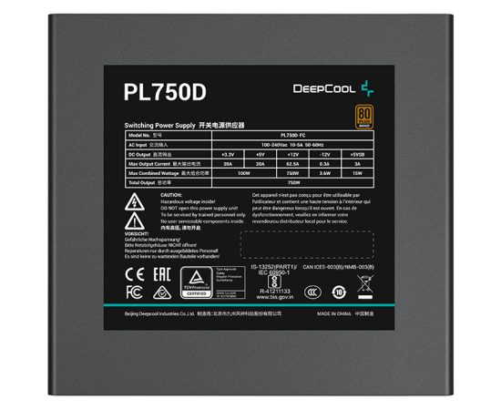 Блок питания Deepcool PL750D (ATX 3.0, 750W, PWM 120mm fan, Active PFC+DC to DC, 80+ Bronze) RET