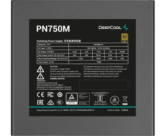 Блок питания DeepCool PN750M V2 Gen.5 (R-PN750M-FC0B-WGEU), 750Вт, 120мм, retail