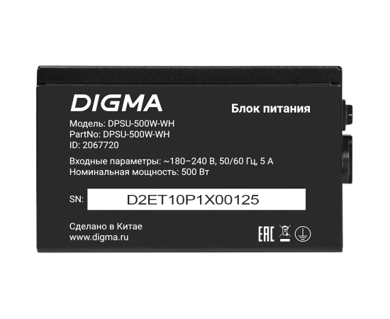 Блок питания Digma DPSU-500W-WH 80 Plus White ATX 500W (20+4pin) APFC 120mm fan 6xSATA RTL