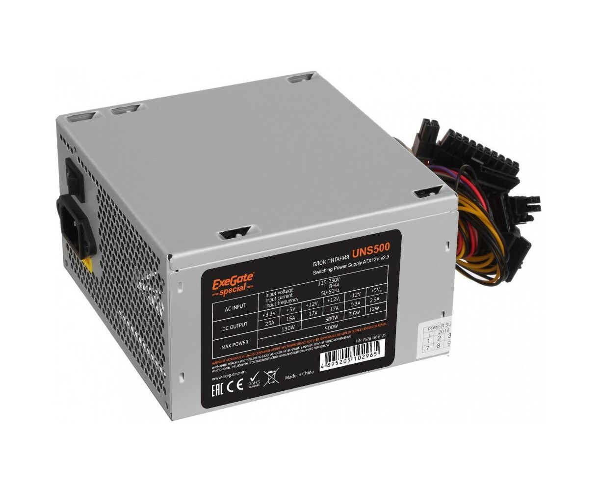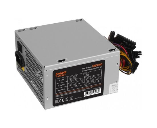 Блок питания ExeGate 500W UNS500, ATX, PC, 12cm fan, 24p+4p, 6/8p PCI-E, 3xSATA, 2xIDE, FDD + кабель 220V в комплекте