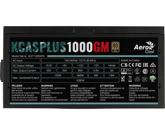 Блок питания Formula AC KCAS Plus 1000GM V2 (ACPG-KPK0FEC.12) ATX 1000W 80+ gold (20+4pin) APFC 140mm fan 10xSATA Cab Manag RTL