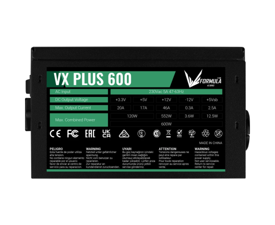 Блок питания FORMULA VX Plus 600 (4711401661665) ATX12V 2.3 600W APFC 12cm fan 24pin 1x(4+4)pin 2xPCIe(6+2) 3xMolex 1xFDD 4xSATA