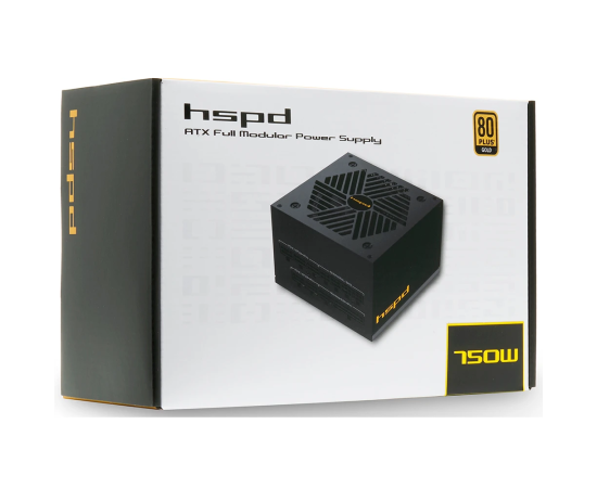 Блок питания HSPD HSK-750GF-BK 750W 80+ Gold (ATX, 2.52, Full modular, 1x24(20+4)pin mesh 550mm, 1xCPU*2 8(4+4)pin 650+150mm, 2xPCIe*2 8(6+2)pin