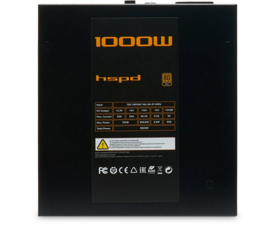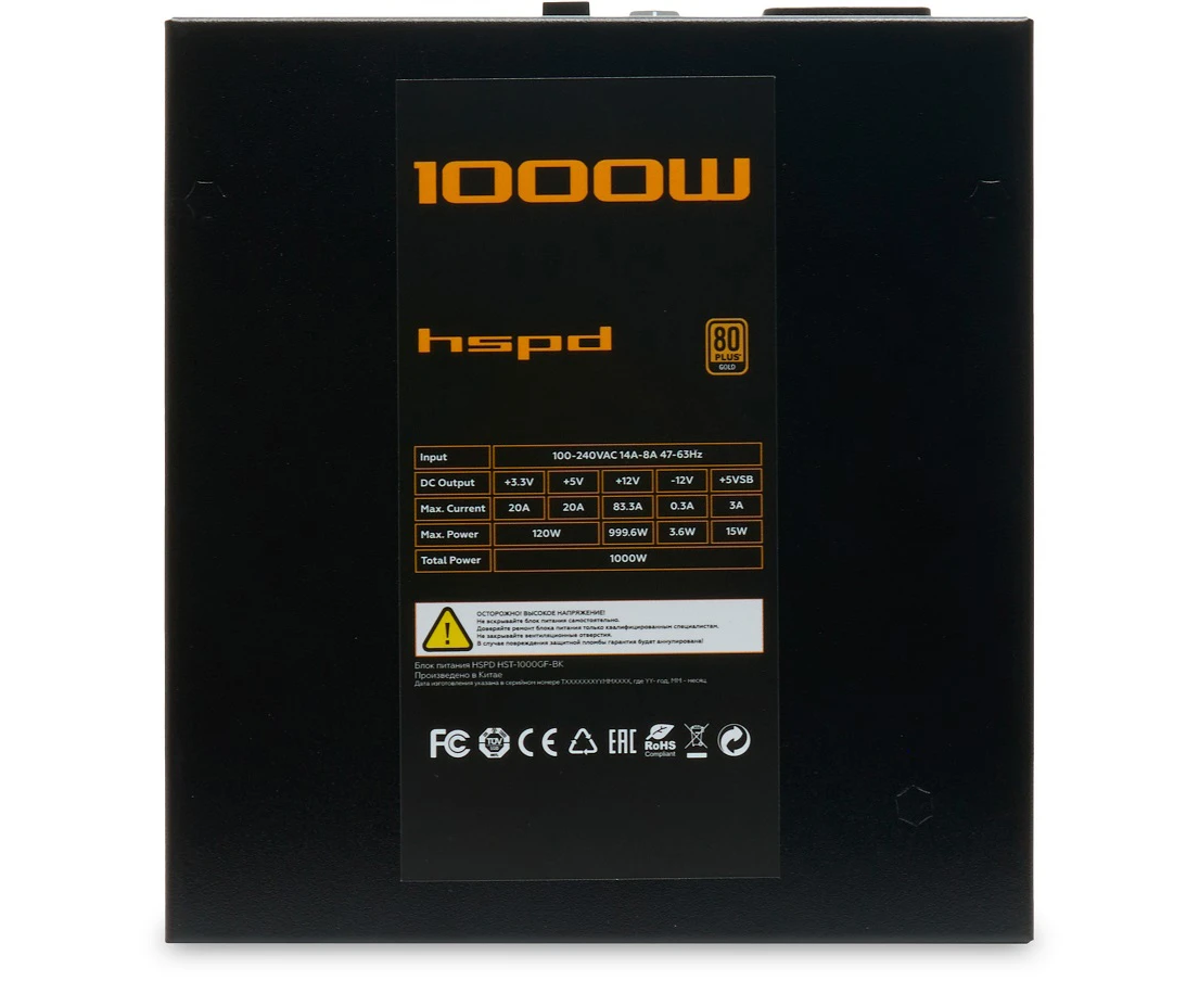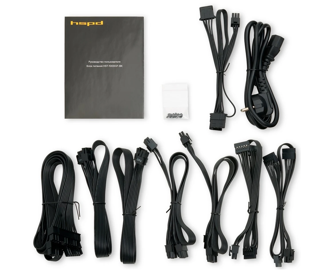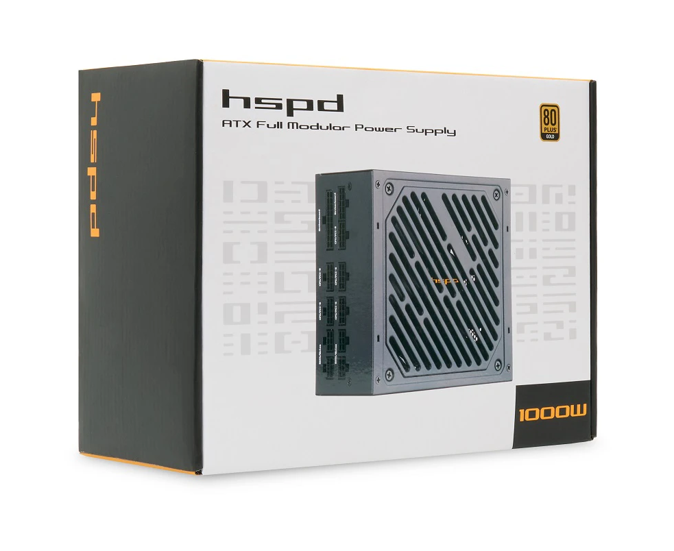 Блок питания HSPD HST-1000GF-BK 1000W 80+ Gold (ATX, 2.52, Full modular, 1x24(20+4)pin 600mm, 2xCPU 8(4+4)pin 700mm, 2xPCIe*2 8(6+2)pin