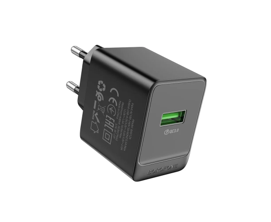 Блок питания сетевой 1 USB Borofone BAS12A Erudite, пластик, QC3.0, цвет: чёрный (1/70/280)