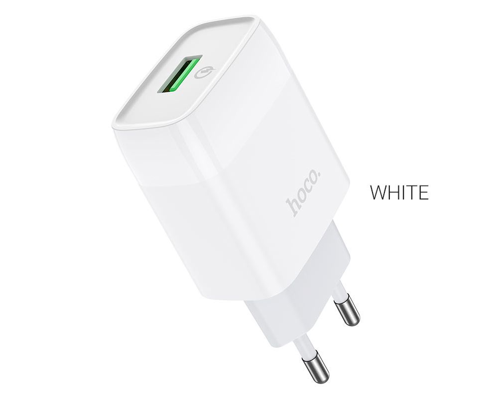 Блок питания сетевой 1 USB HOCO, C72Q, Glorious, 3A, пластик, QC3.0, цвет: белый