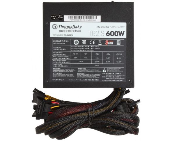 Блок питания Thermaltake TR2 S TRS-600AH2NK (TRS-0600-2) ATX 600W 80+ (24+4+4pin) APFC 120mm fan 5xSATA RTL