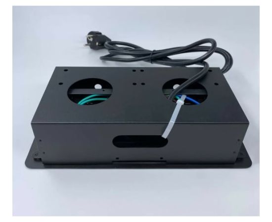 Выдвижной встраиваемый блок розеток Inrior выдвижная розетка, на 2 EURO розетки и 2 USB-A+C, черный, TORO-33-20 полностью в сборе: с внутренней проводкой, с металлической монтажной коробкой, проводом 1.8 м с вилкой. Врезное отверстие - 225х108 мм.