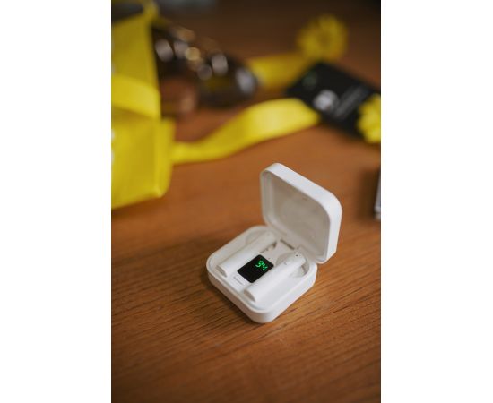 40 мАч (один наушник) LED индикатор состояния: есть Водонепроницаемость - IPx4. Солнечная батарея для зарядки. Комплектация: наушники, кейс для хранения и зарядки, инструкция, зарядный кабель, коллекционная карточка, игральные кубики, буклет. Цвета: White