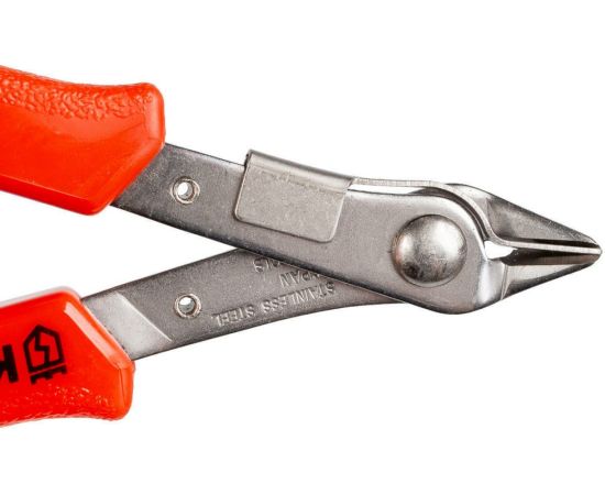 Бокорезы с держателем представляет собой качественный ручной инструмент для точных работ. Бокорезы способны резать провода сечением до 2,5 мм2. Лезвия выполнены из качественной нержавеющей стали толщиной 2,2 мм. Материал обладает прочностью и долговечностью. Прецизионная заточка лезвий обеспечивает качественный и точный рез. Угол наклона кромок 23° служит для удобства проведения работ. Возвратная пружина обеспечивает комфортную эксплуатацию. Мягкие рукоятки из термопластрезины удобно лежат в руках и не скользят при работе. Специальный держатель препятствует выпадению отрезанных частей. Защитная крышка обеспечивает безопасность при транспортировке.