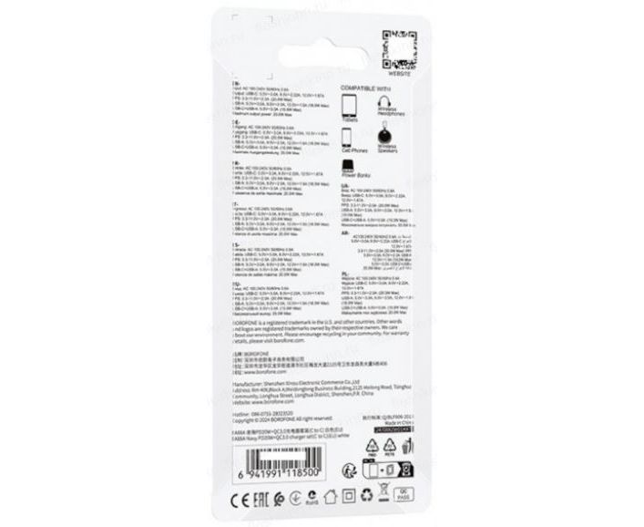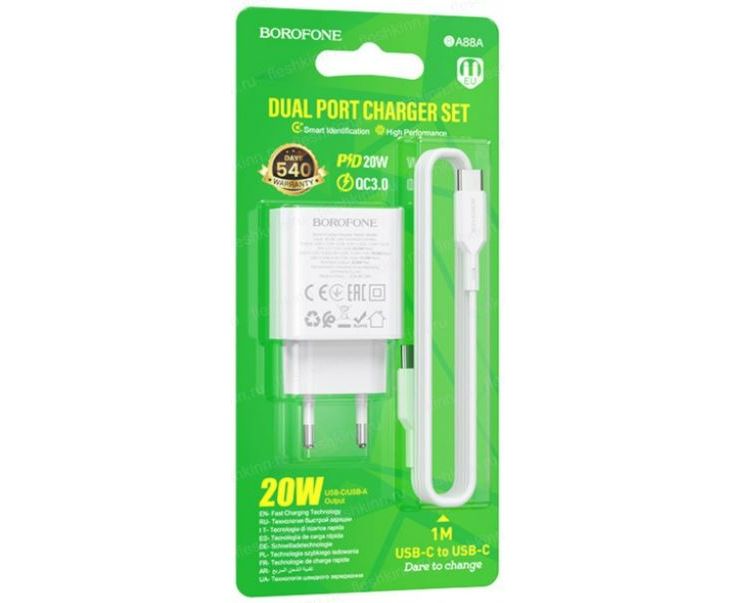 Кроме высокой мощности в 20 Вт, зарядное устройство Borofone BA88A гарантирует безопасность при эксплуатации благодаря встроенной защите от короткого замыкания, перегрева и перезарядки. Делая выбор в пользу этого устройства, вы получаете надежного партнера для зарядки своих устройств. Не упустите возможность увеличить эффективность своей зарядки с Borofone BA88A!