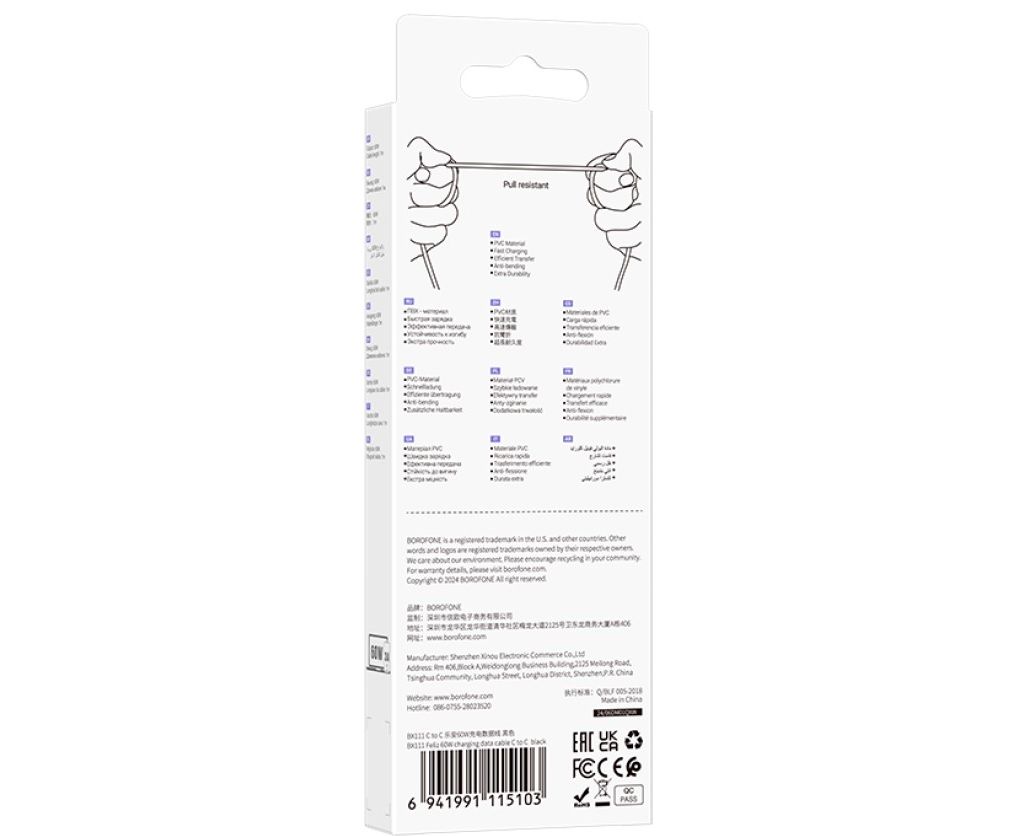 Кабель BOROFONE BX111/ Type-C-Type-C/ 1m/ 60W/ Черный