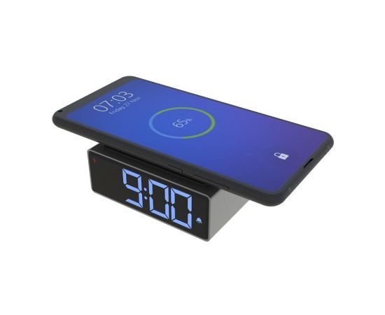 Современные цифровые часы-будильник лаконичного дизайна. Компактный размер корпуса, многофункциональные, удобный будильник и новейшие технологии встроенной 10 Вт беспроводной зарядки, четкий циферблат электронных часов с хорошо заметными цифрами