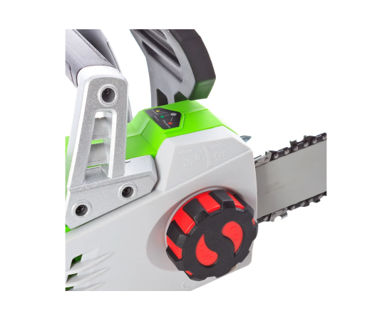 Трехцветный индикатор работы пилы. Для определения готовности к работе – ЖЕЛТЫЙ. Индикация оптимальной нагрузки в процессе пиления – ЗЕЛЕНЫЙ. Индикация перегрузки – КРАСНЫЙ. Разряженный или неисправный аккумулятор – моргающий ЖЕЛТЫЙ-КРАСНЫЙ.