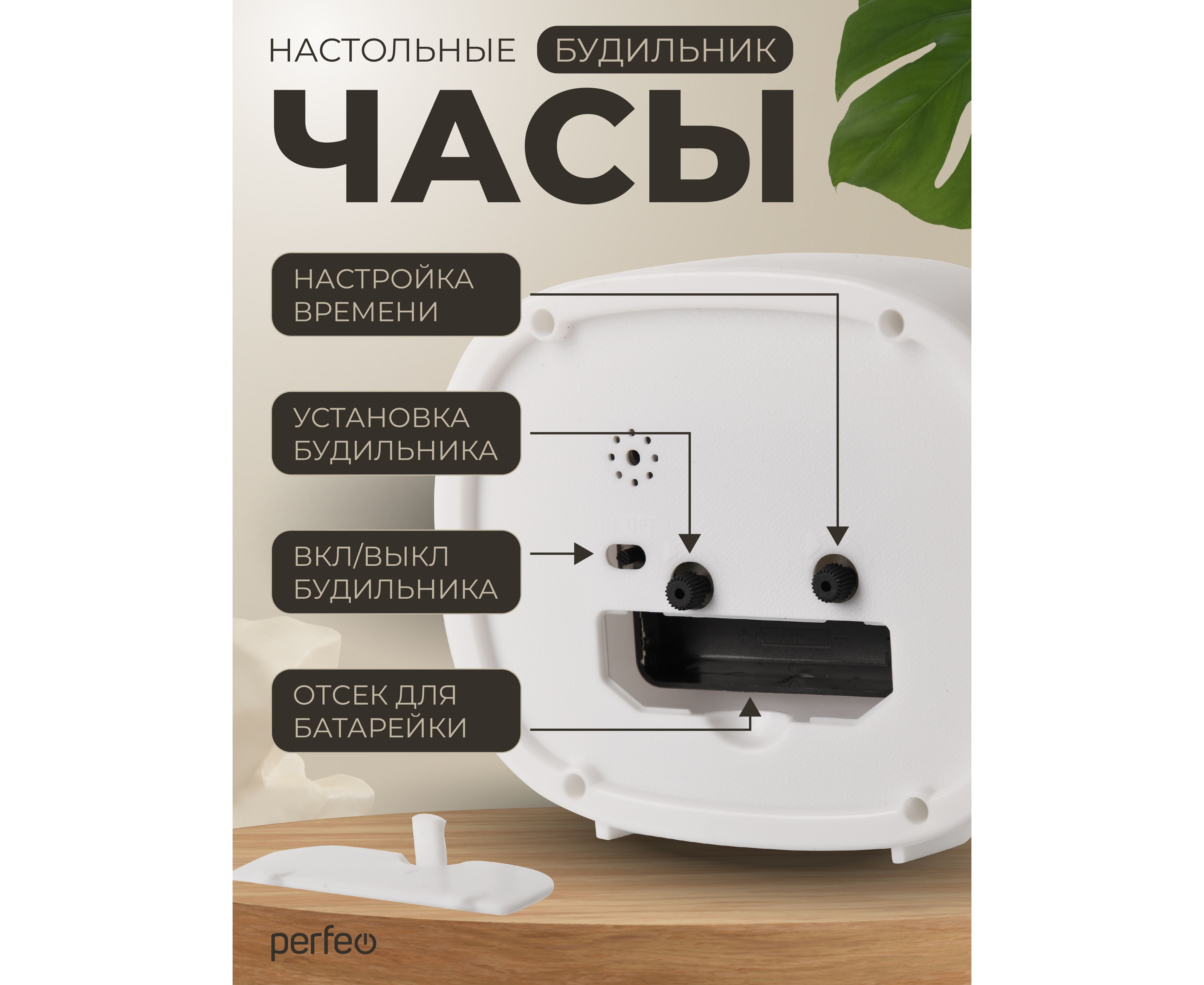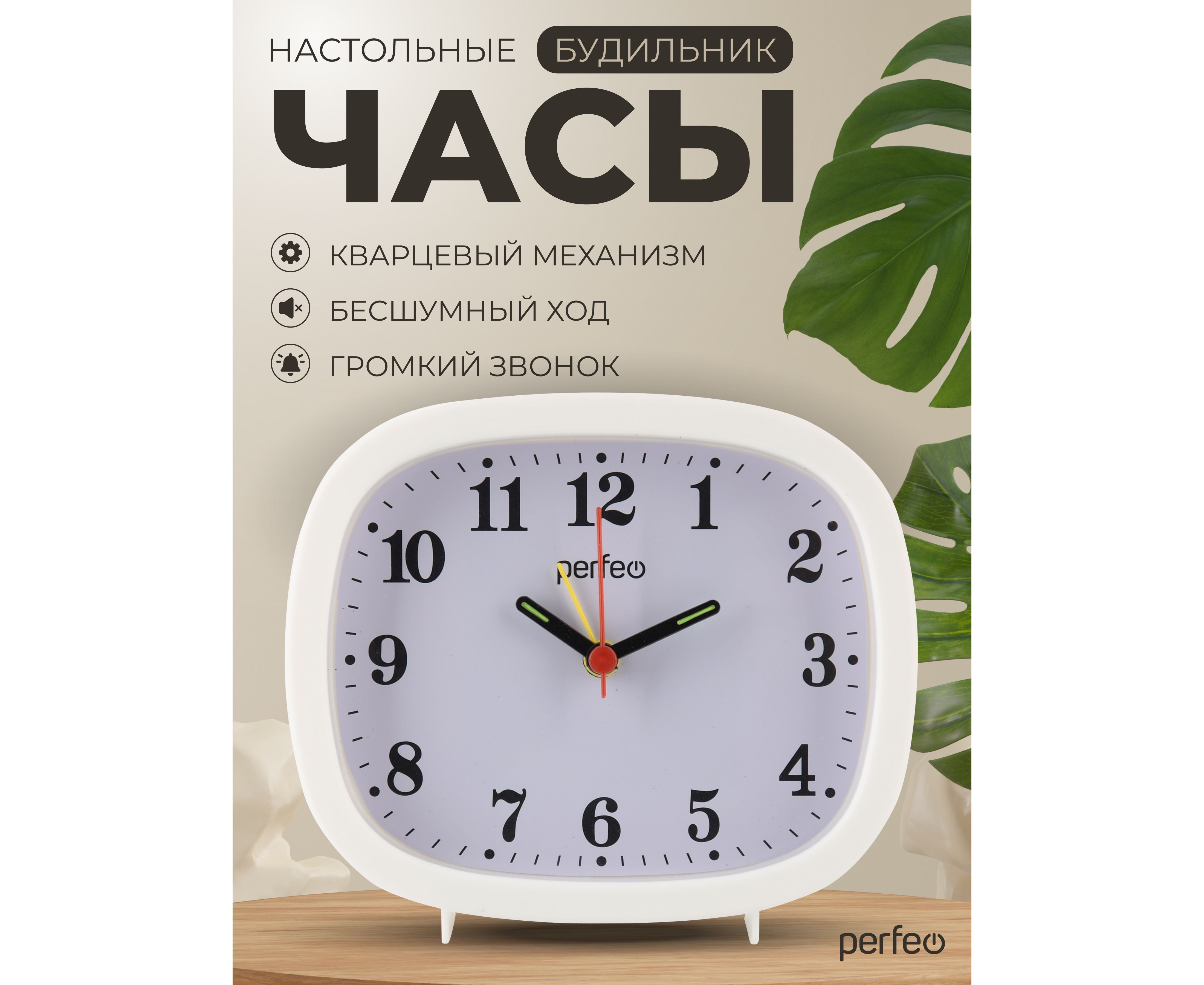 Доп. опции прибора арабские цифры на циферблате; Будильник кварцевый; громкий будильник
