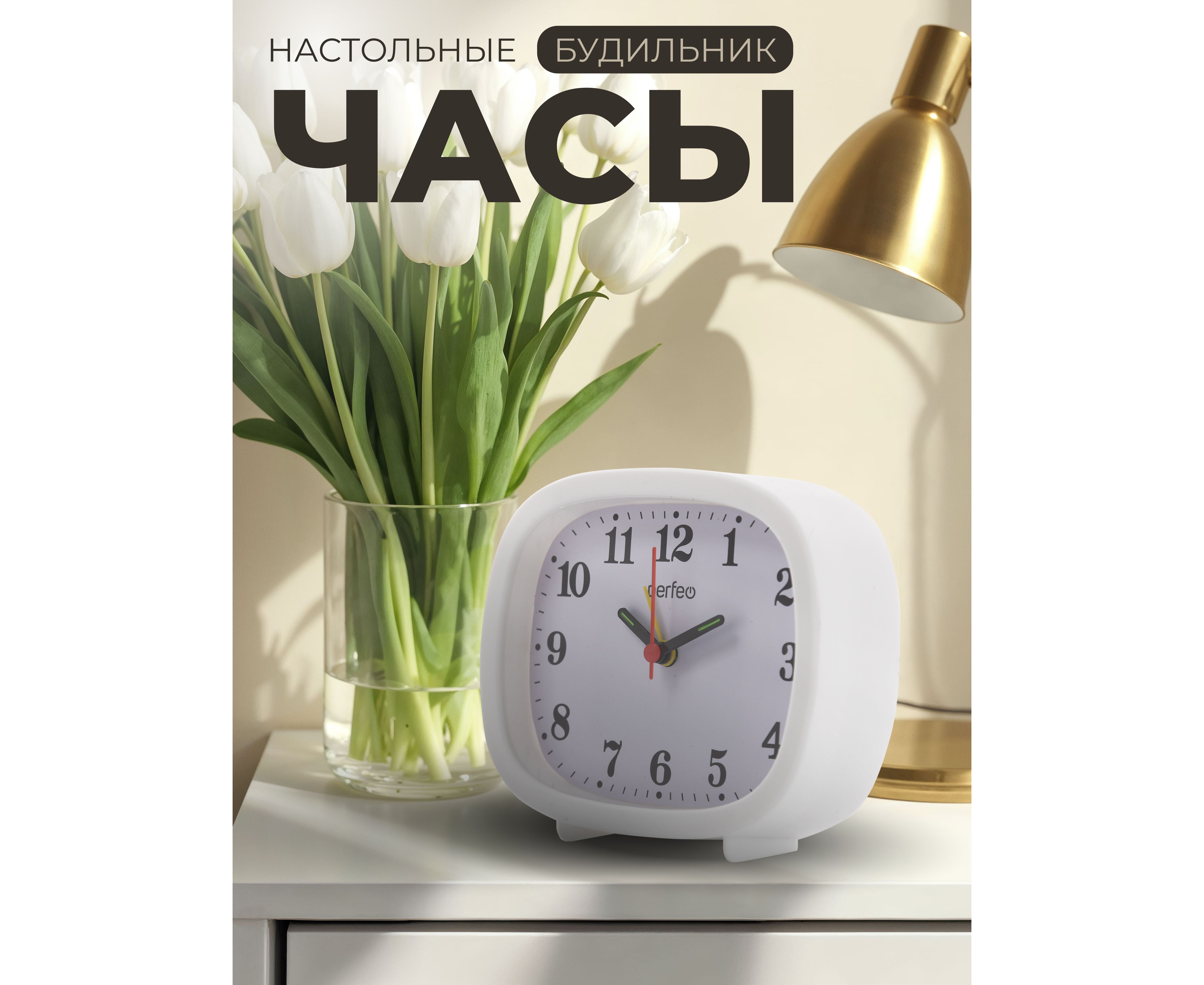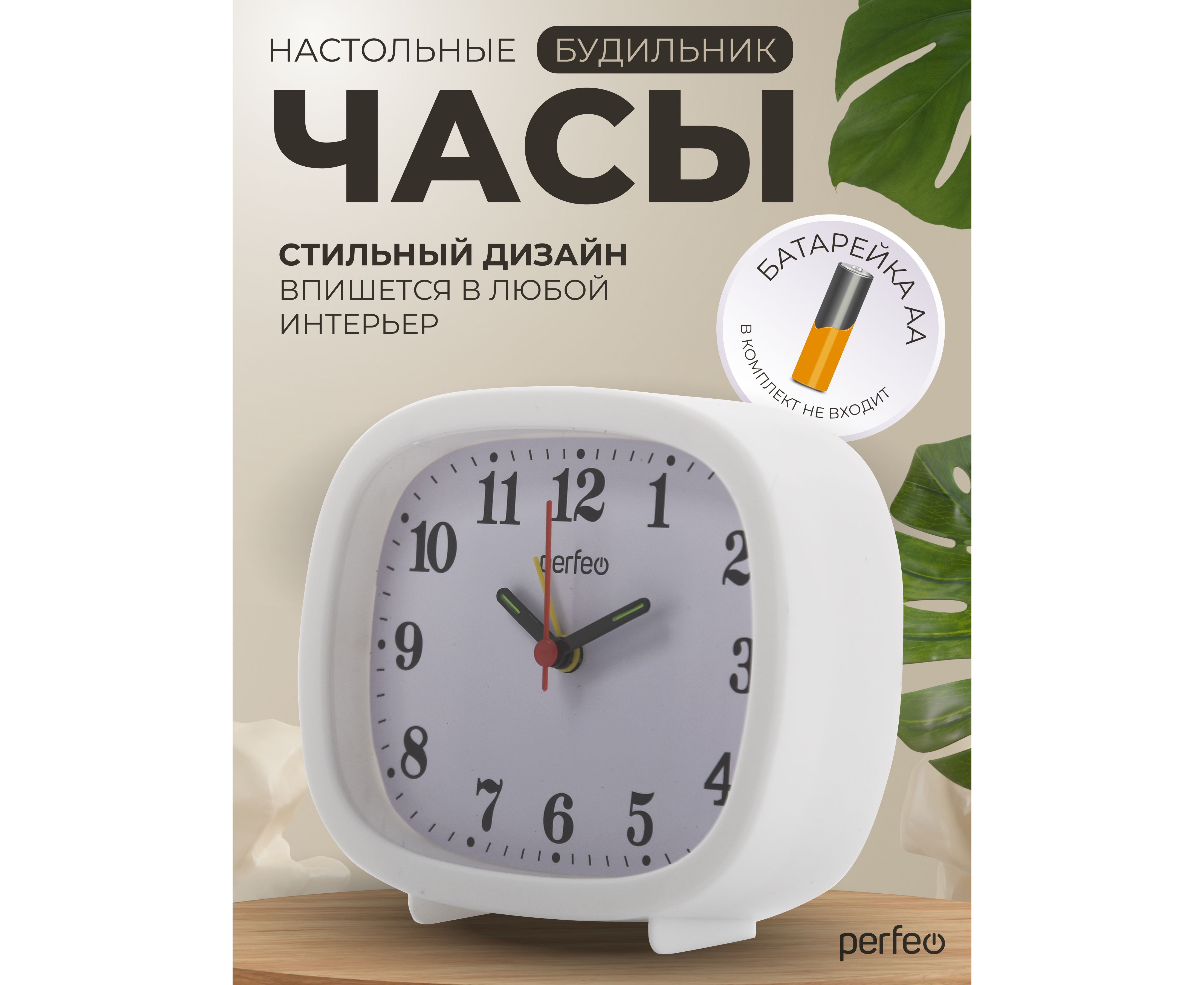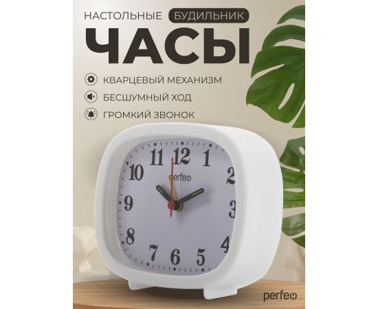 Часы-будильник Perfeo "PF-TC-021", прямоугольные, белые, (Арт. PF_E1960)