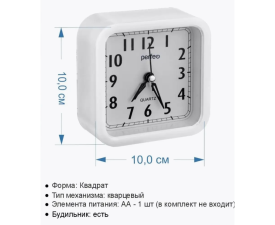 Часы-будильник Perfeo Quartz PF-TC-019 PF_C3164 белые