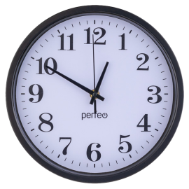 Настенные часы Perfeo "PF-WC-002"(С2), круглые д. 25 см, чёрный корпус / белый циферблат