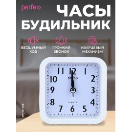 Часы-будильник Perfeo Quartz "PF-TC-008", квадратные 9,5*9,5 см, белые, (Арт. PF_C3111)