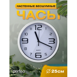 Настенные часы Perfeo "PF-WC-002"(С2), круглые д. 25 см, белый корпус / белый циферблат