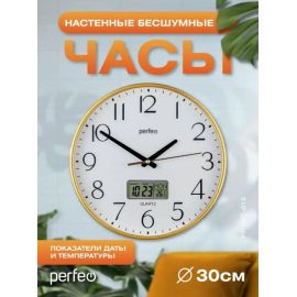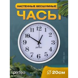 Настенные часы Perfeo "PF-WC-003"(С2), круглые д. 30 см, белый корпус / белый циферблат