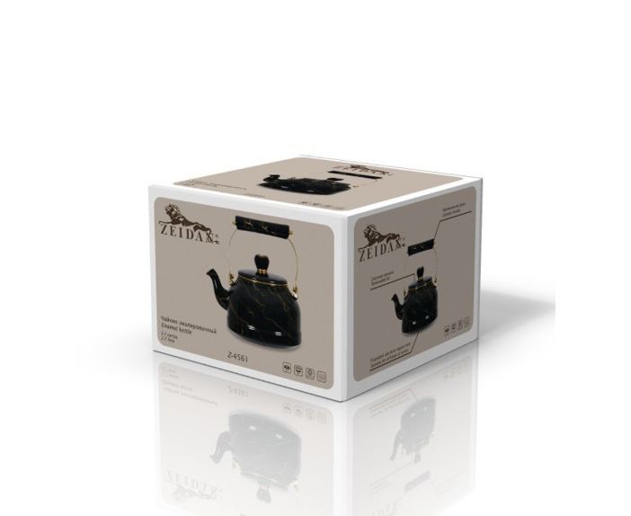 Чайник ZEIDAN Z-4561 2,7л Black marble эмалированная сталь, комбинированная ручка под золото, внутреннее эмалированное покрытие