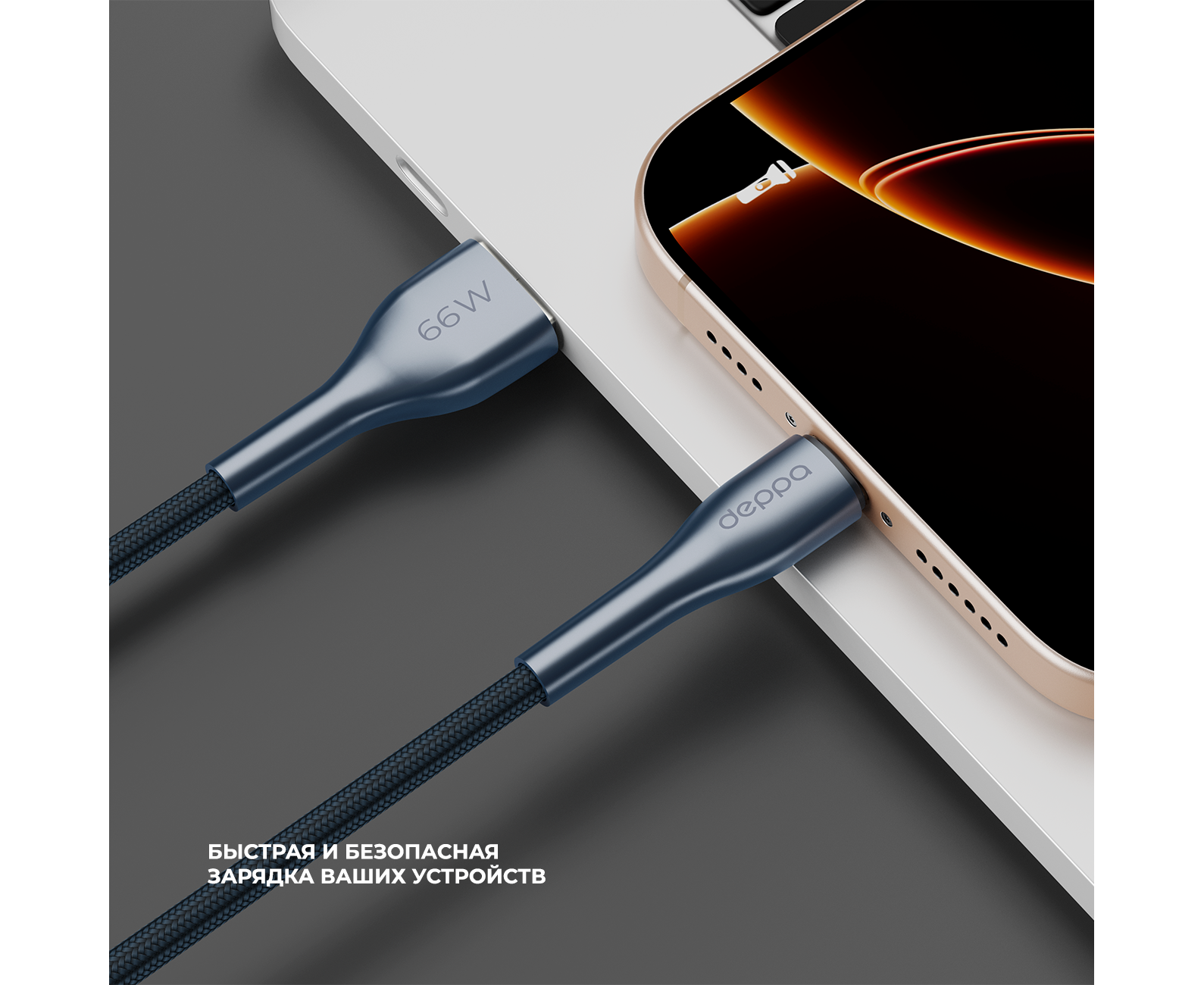 Дата-кабель Apollo USB-А - USB-С, 66Вт, 1м, черный, Deppa
