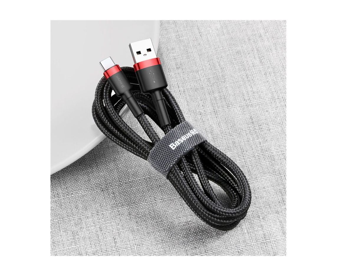 Дата-кабель BASEUS Cafule (CATKLF-B91) Type-C 3А 1м красно-чёрный