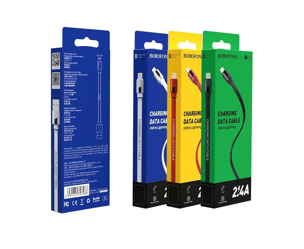 Дата-кабель BOROFONE BU8 Glory lightning 1м (белый)