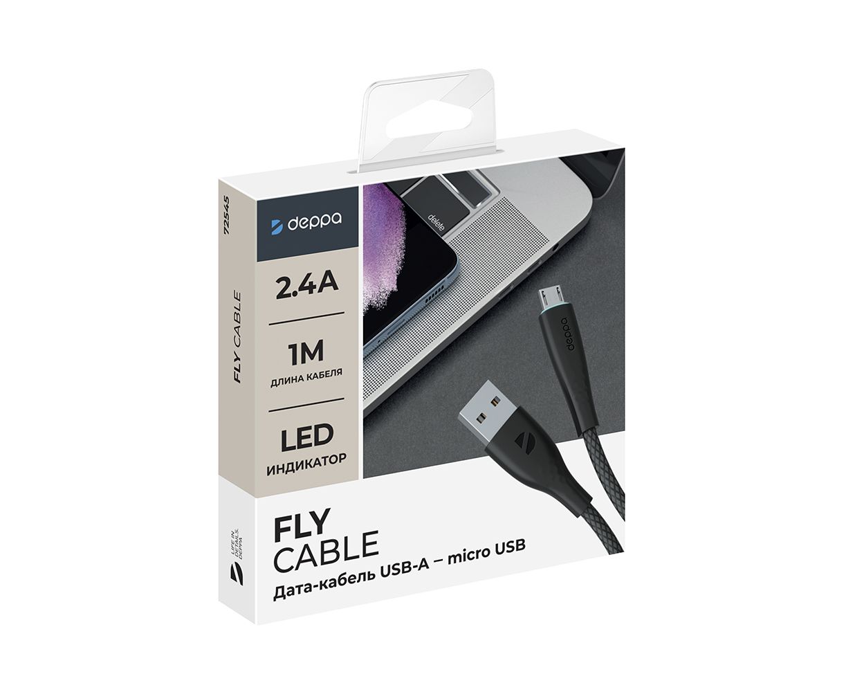 Дата-кабель Fly USB - micro USB, 1м, черный, Deppa
