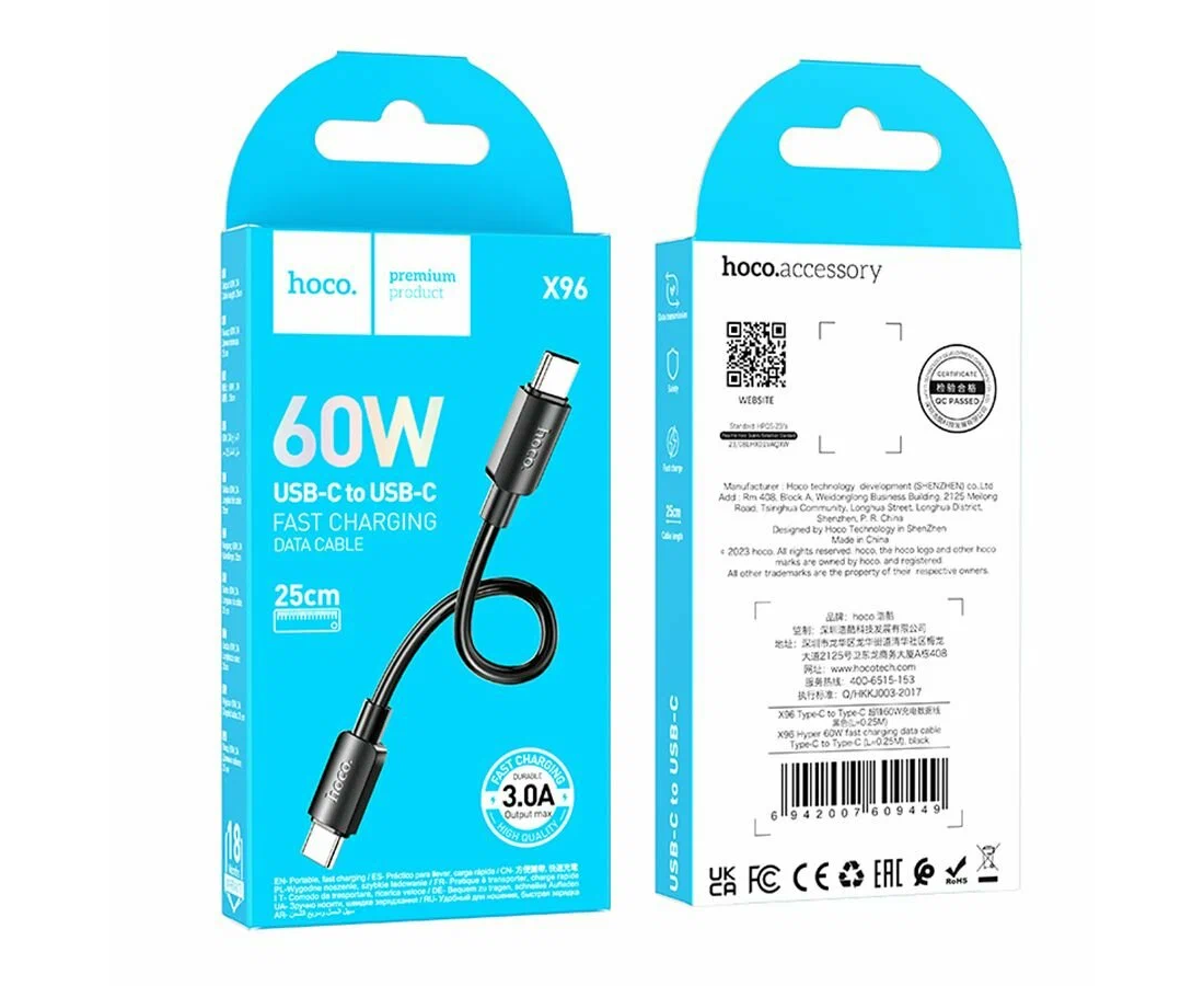 Дата-кабель HOCO X96 Hyper 60W Type-C to Type-C (L=0.25M) (черный)