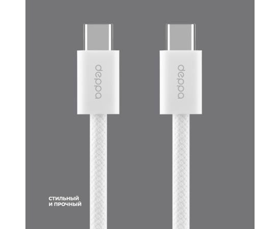 Дата-кабель Original, USB-C - USB-C, 60Вт, 1м, нейлон, белый, Deppa