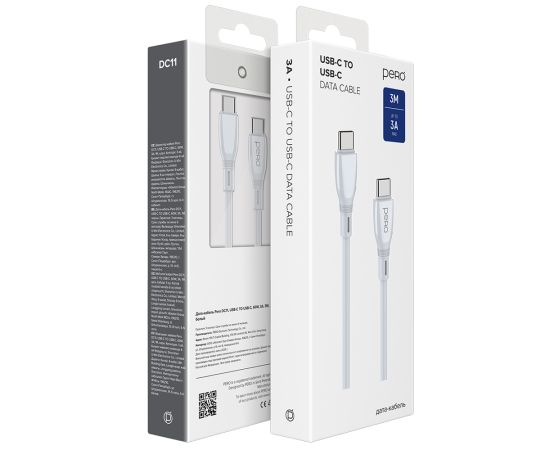 Дата-кабель PERO DC11 PD Type-C to Type-C, 60W, 3m, White