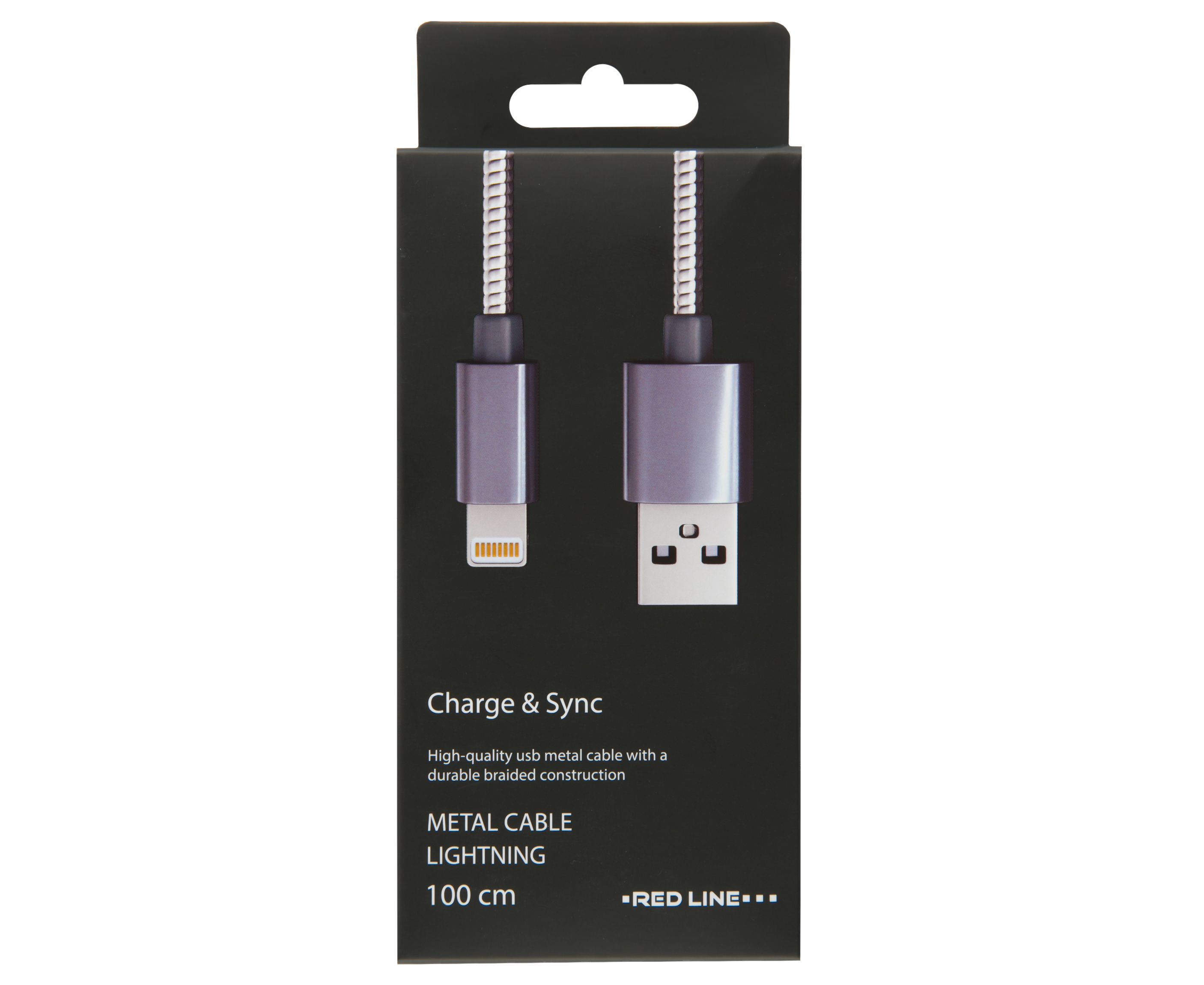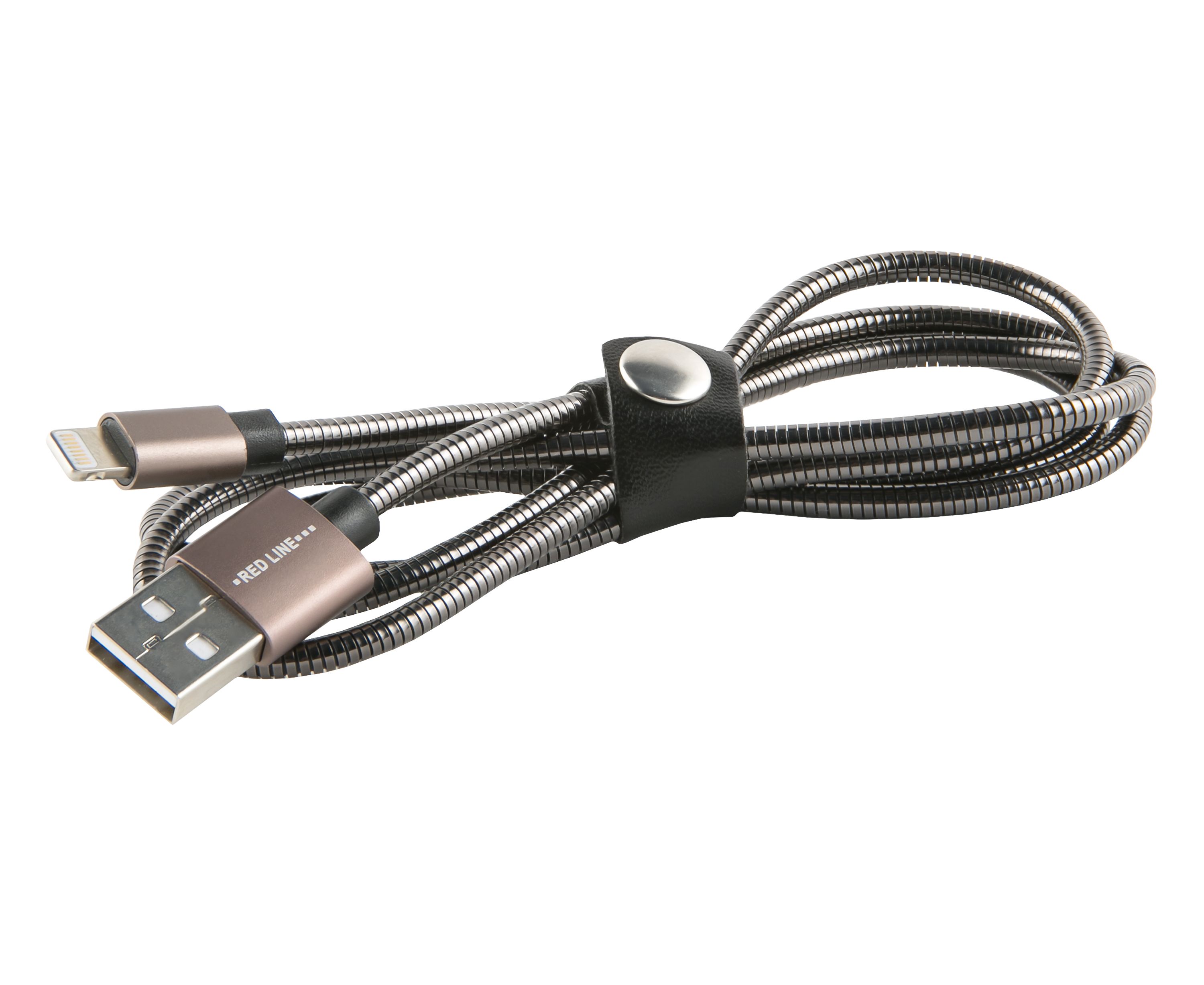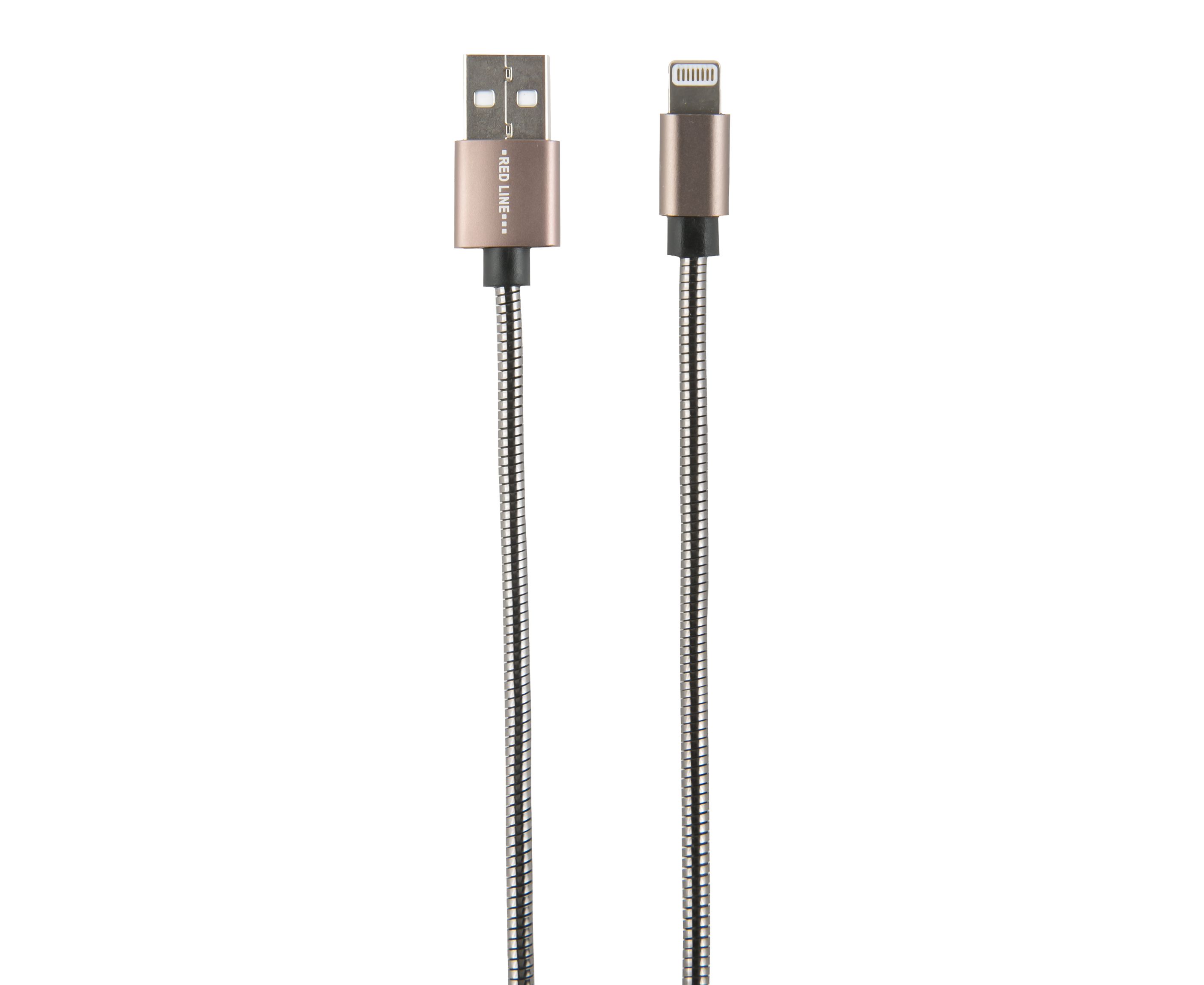 Дата-кабель Red Line S7 USB - 8 - pin для Apple, металлическая обмотка, черный