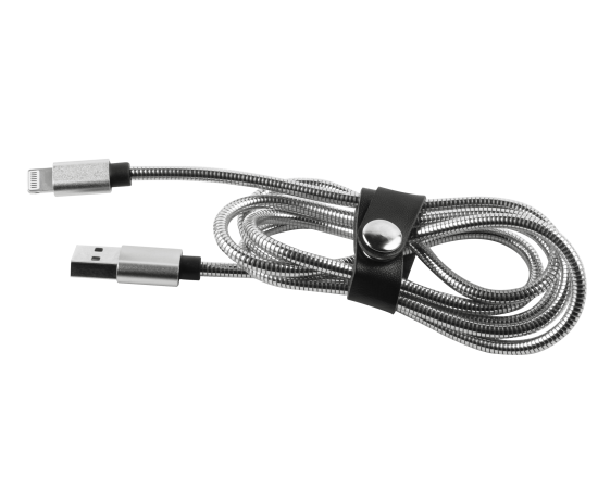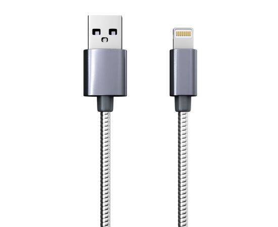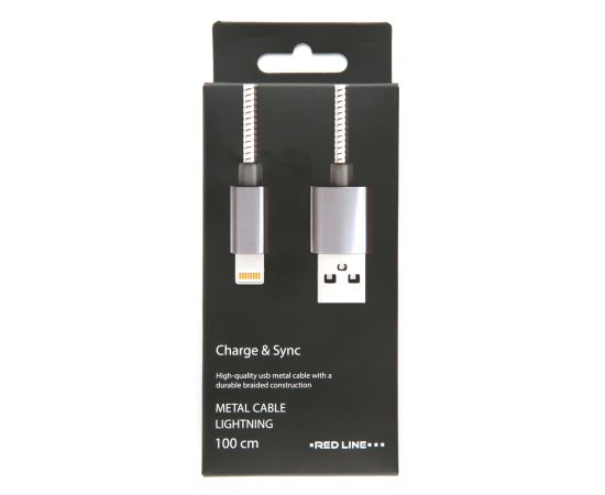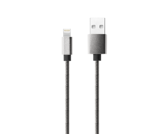 Дата-кабель Red Line S7 USB - 8 - pin для Apple, металлическая обмотка, серебристый