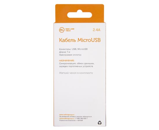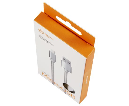 Дата-кабель Red Line USB - micro USB нейлоновая оплетка, серебристый