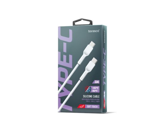 Дата-кабель Silicone Soft Touch Type-C - Type-C, 65W, 1м, Power Delivery, белый