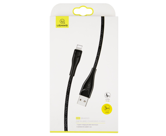 Дата-Кабель USAMS-SJ397 USB - Lightning (3 м) нейлоновая оплетка, черный (SJ397USB01)