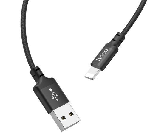 Дата-кабель USB 2.0A для Lightning 8-pin Hoco X14 нейлон 1м (Black)