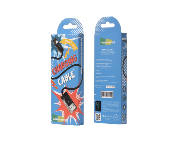 Дата-кабель USB 2.1A для micro USB More choice K12m нейлон 1м (Black)