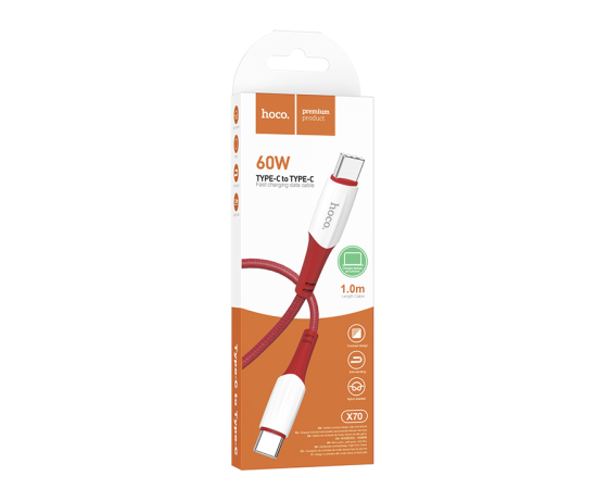 Дата-кабель USB 3.0A 60W для Type-C Type-C Hoco X70 нейлон 1м (Red)