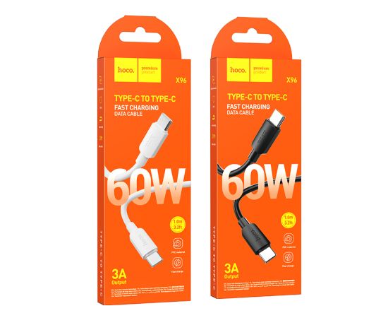 Дата-кабель USB 3.0A 60W для Type-C Type-C Hoco X96 ПВХ 1м (White)