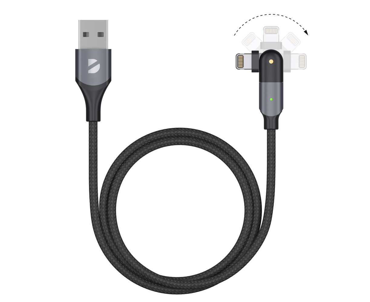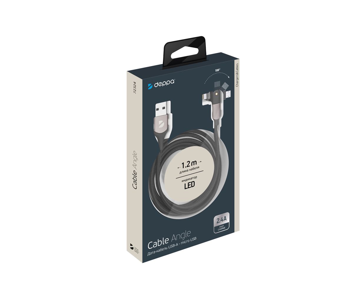 Дата-кабель USB-A - Lightning, поворотный, 180˚, USB 2.0, 2,4A, 1.2м, алюминий, нейлон, черный,Deppa