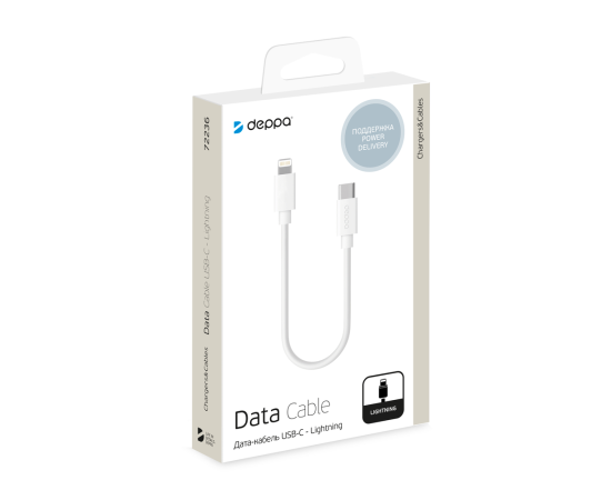 Дата-кабель USB Type-C - Lightning, 1.2м, белый, Deppa, 72236